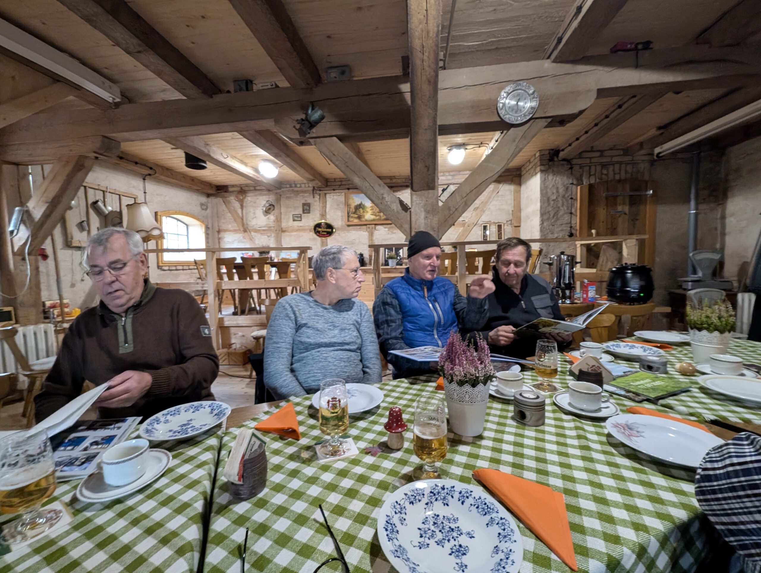 Am 30. Oktober 2025 haben wir uns morgens am Schiff getroffen. Wir wollten den Seemannssonntag einmal mit einem etwas anderen Thema begehen. Daher hat Wolfgang Wegner für uns eine Besichtigungstour mit anschließendem Imbiss in der Oldtimerscheune Bandelsdorf organisiert. Wir fuhren mit 3 Autos vom Schiff nach Bandelsdorf. Dort nahm uns der Vereinsvorsitzende, Herr Below,  in Empfang und hat uns einiges über die Geschichte der Oldtimerscheune vermittelt. Anschließend führte er uns durch die Ausstellungshallen. Wir waren erstaunt und begeistert, dass so viele Gleichgesinnte alte Technik warten, pflegen und erhalten. Wenn man durch die Ausstellung geht, fühlt man sich um viele Jahre zurückversetzt, sind hier doch viele Ausstellungsstücke aus vergangenen Zeiten zu sehen. Als Abschluss der Tour servierte uns Herr Below einen sehr schmackhaften, gut gewürzten Kesselgulasch. Am Schluss hat der Vorstand wichtige Informationen für die Mitglieder bekannt gegeben. Wir finden, dass es ein gelungener Tag war.